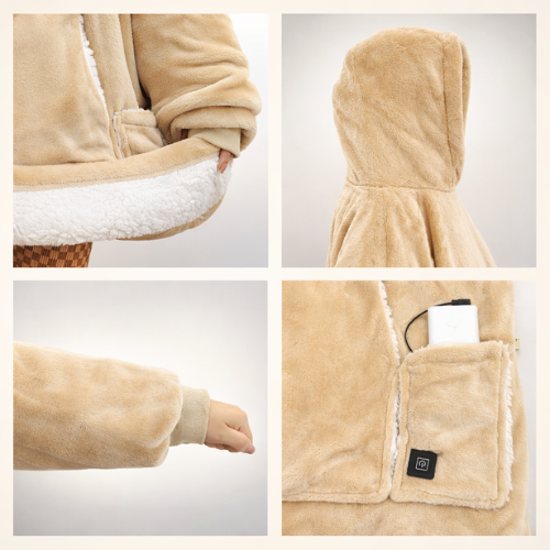 Transformez vos moments à la maison en vrai cocon de chaleur. Cette plaide chauffante à capuche combine un tissu ultra-doux avec des zones chauffantes placées pour réchauffer le corps en profondeur, tout en gardant une liberté totale de mouvement. Sa coupe oversize enveloppe comme une couverture, et la grande poche avant devient le spot parfait pour réchauffer les mains. Idéale pour le canapé, le télétravail, les soirées d’hiver ou après une journée fatigante, elle apporte une sensation de confort immédiat, simple et addictive. Confort premium, chaleur homogène, effet cocooning instantané.